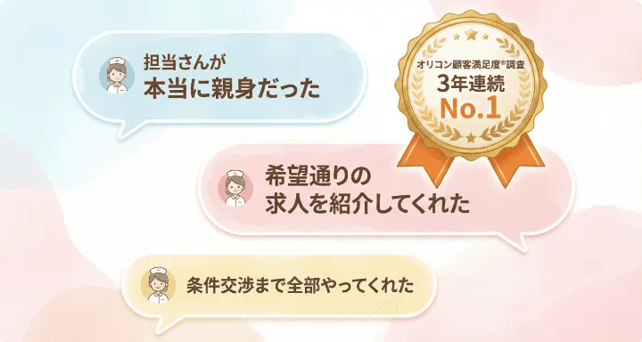 どの転職サイトか迷ってしまう方は、2026年 オリコン顧客満足度®調査3年連続No.1を獲得している「ナース専科 転職」がおすすめです。